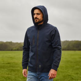 Wetterfeste Softshelljacke mit winddichtem Material, warmer Fütterung, Brusttasche, verstellbarer Kapuze und ergonomischem Schnitt – ideal bei Schnee, Wind und wechselhaftem Wetter.